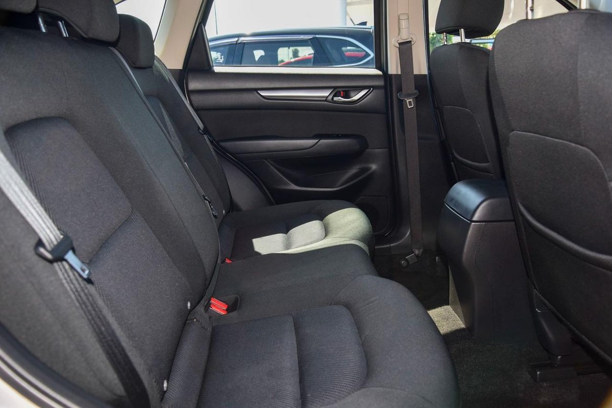 Inside, the CX-5 seats five comfortably, with ample headroom and legroom, making long drives a breeze. The cloth trim is both durable and comfortable, perfect for family trips or daily errands. Its five-door design adds versatility, ensuring easy access for passengers and loading capabilities.