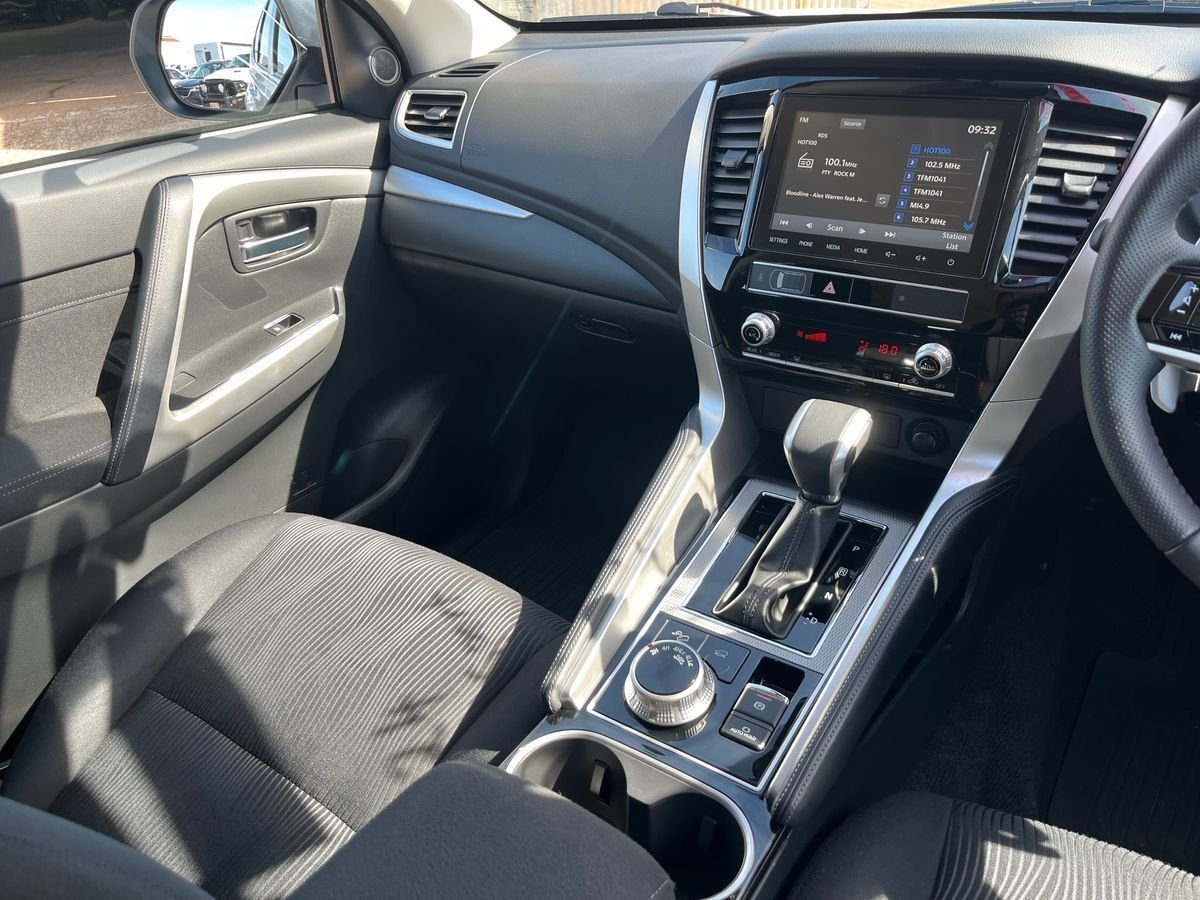 Pajero Sport into gear and felt the 2.4-litre turbo-diesel engine come alive. With 133 kW and 430 Nm under the bonnet, the SUV's 4WD system gripped the red dirt road as his gear-laden trailer rattled behind. The 8-speed sports automatic shifted smoothly, and the rugged body-on-frame chassis soaked up unexpected corrugations.